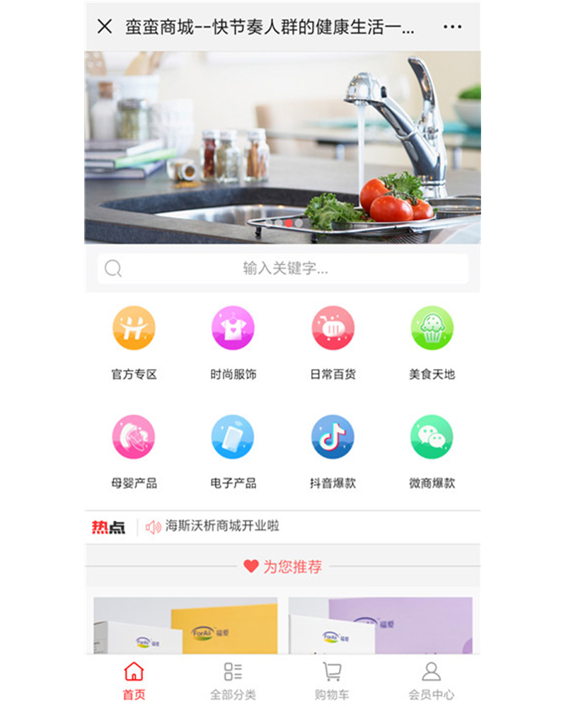 該商城是全方位購(gòu)物一體的微信商城,開發(fā)有全部分類、購(gòu)物車、會(huì)員中心等等